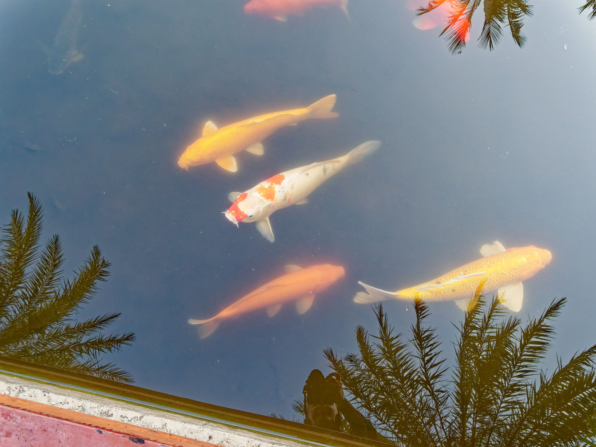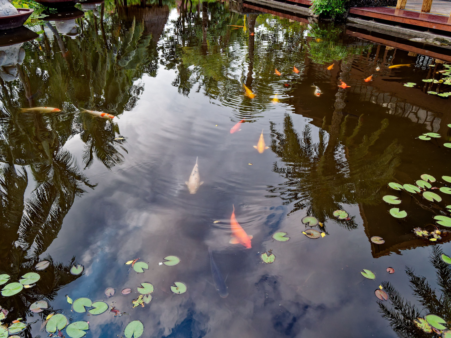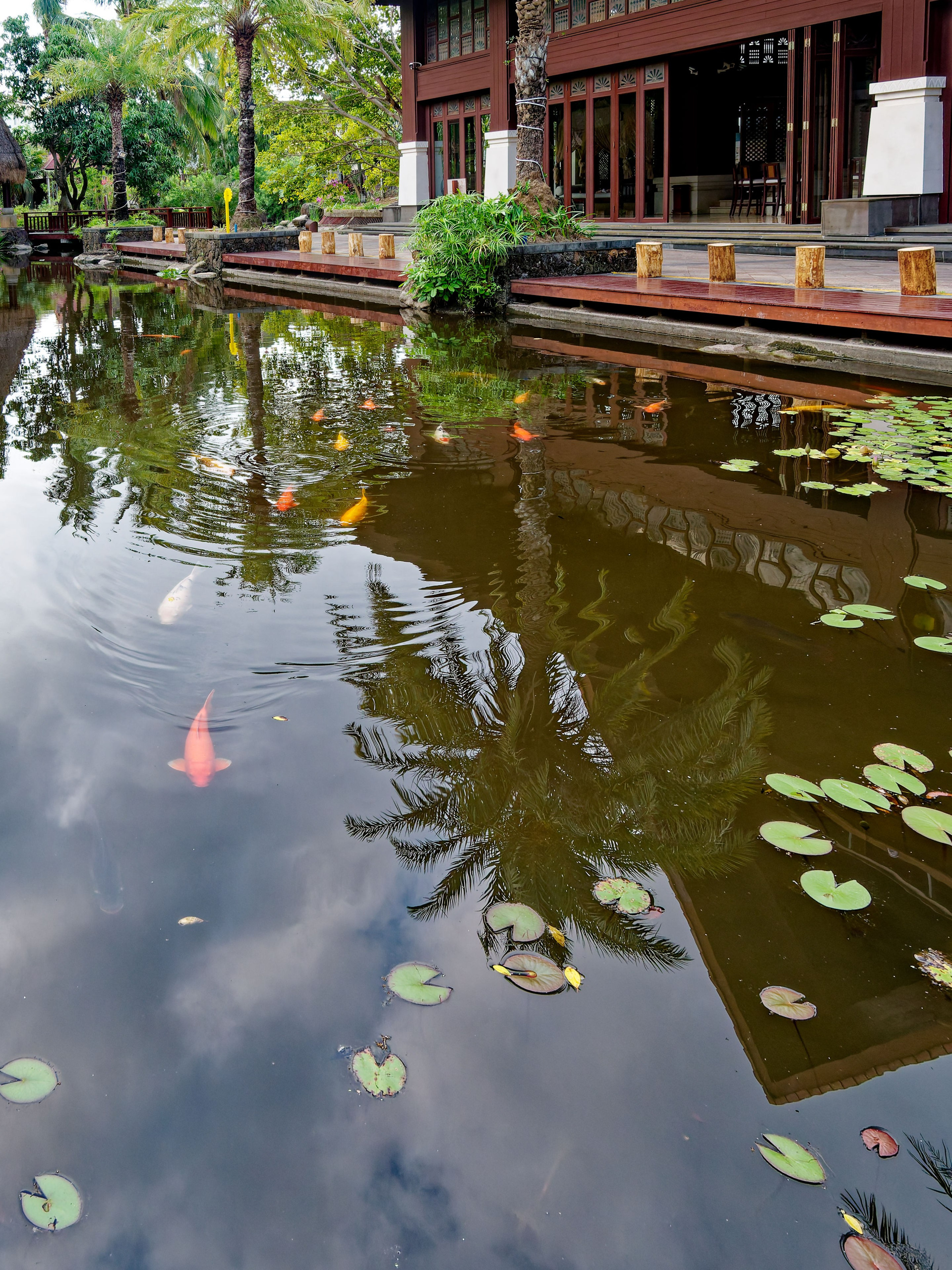 • Хайнань 2026, Золотые рыбки в реке отеля