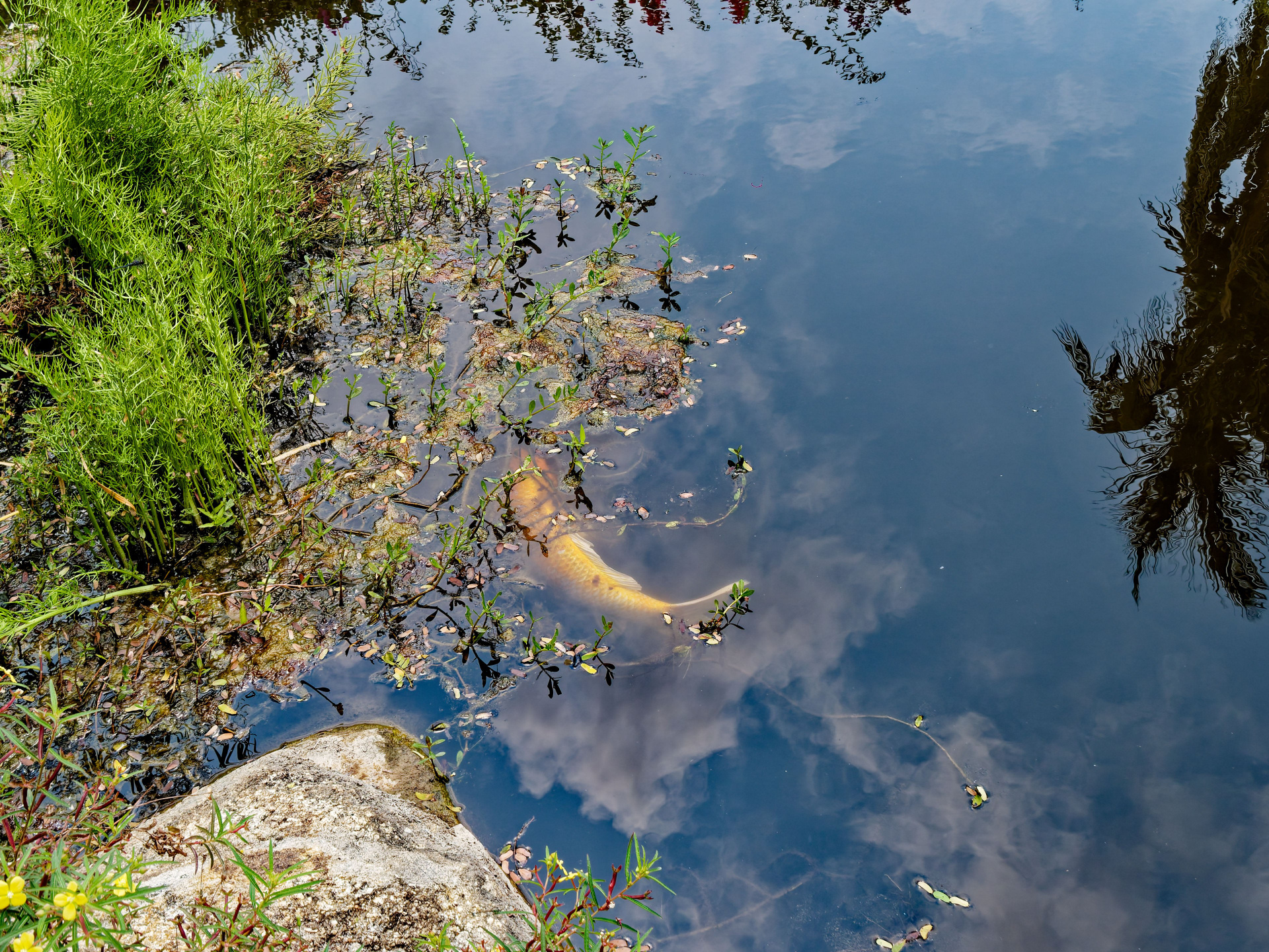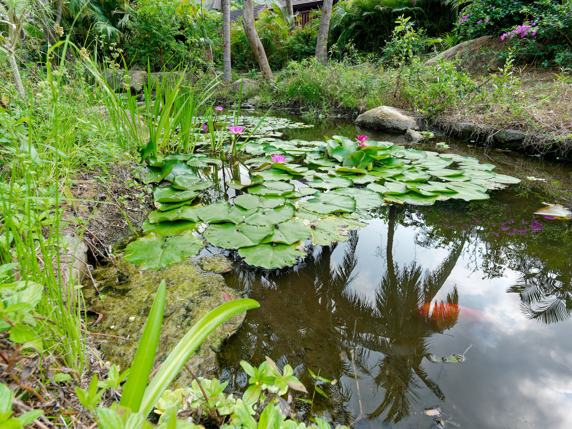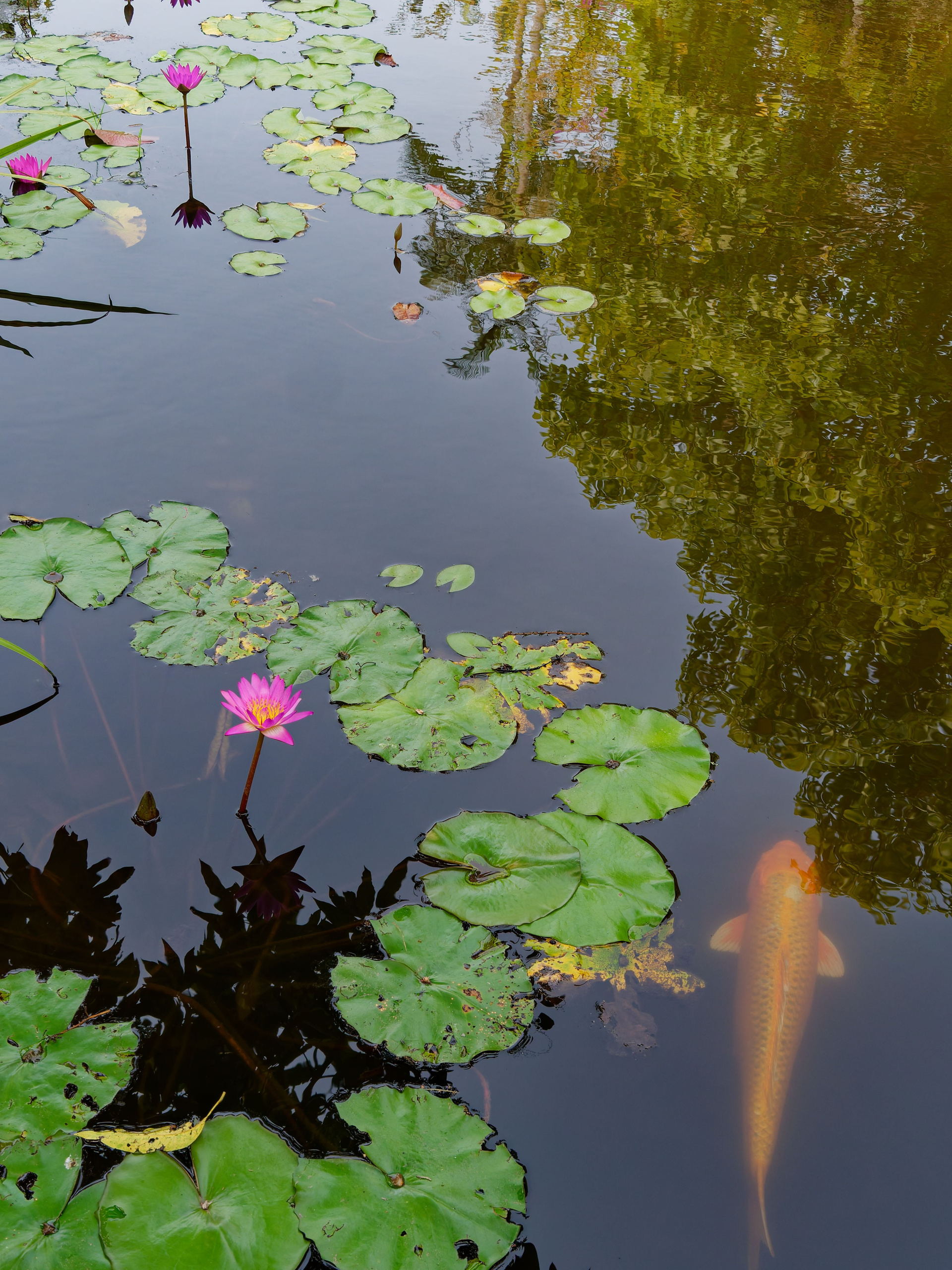 • Хайнань 2026, Золотые рыбки в реке отеля